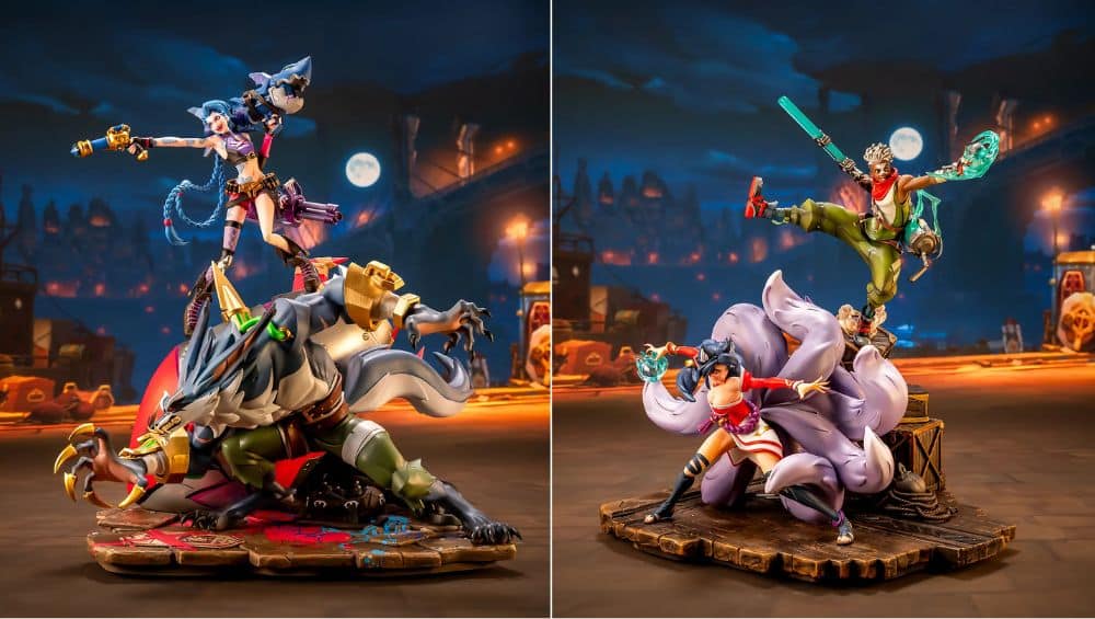 Pure Arts bringt 2026 zwei detailreiche 1/10-Statuen zum kommenden Fighting Game 2XKO heraus. Die Dioramen zeigen Ahri & Ekko sowie Jinx & Warwick in dynamischen Kampfszenen. Beide Sets lassen sich miteinander verbinden und ergeben gemeinsam ein großes Tag-Team-Diorama. Jede Statue ist aus Polyresin gefertigt, hochwertig bemalt und enthält einen Code für exklusive Ingame-Inhalte.