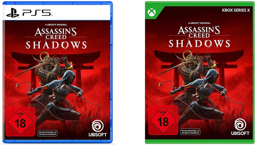 Bei Amazon, MediaMarkt und Saturn bekommt man aktuell das Spiel „Assassin’s Creed Shadows“ in der Standard Variante für die Playstation 5 und die Xbox Series X für je 42,99€.