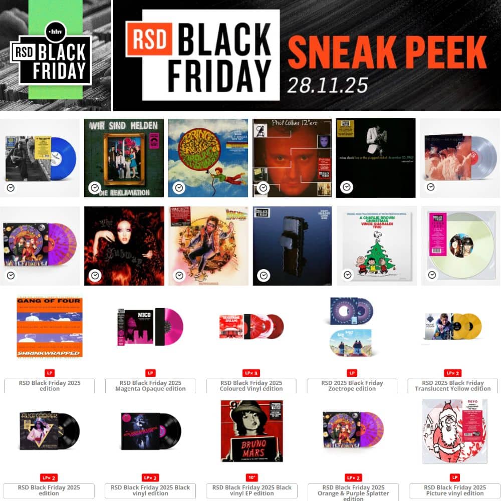 Am 28. November 2025 findet der RSD Black Friday statt, und die Liste der diesjährigen Sonderpressungen ist bereits veröffentlicht. Der Black Friday Record Store Day gilt als zweiter wichtiger Termin im Jahr für Sammler, und HHV präsentiert in der Berliner Filiale ein umfangreiches Sortiment an exklusiven Veröffentlichungen. Wer Platten auf seine Wunschliste setzt, wird benachrichtigt, falls nach dem Event noch Exemplare online verfügbar sind.