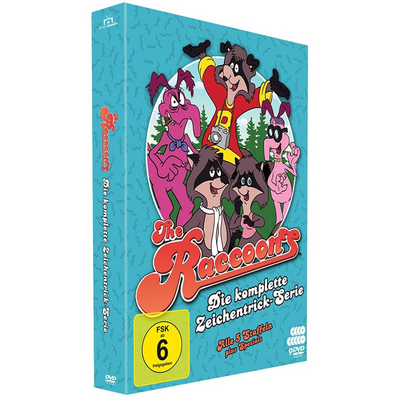 Im November dieses Jahres bringt Fernsehjuwelen die komplette Zeichentrick Serie „Die Raccoons“ in einer Gesamtedition mit insgesamt 9 DVDs und digitalem Booklet in den Handel. Neben allen Episoden der Serie sind hier noch folgende Specials enthalten: „Weihnacht ohne Bäume“, „Das Eishockey-Spiel: Let’s Dance!“, „Der kleine, gelbe Stern (Teil 1)“ und „Der kleine, gelbe Stern (Teil 2)“.