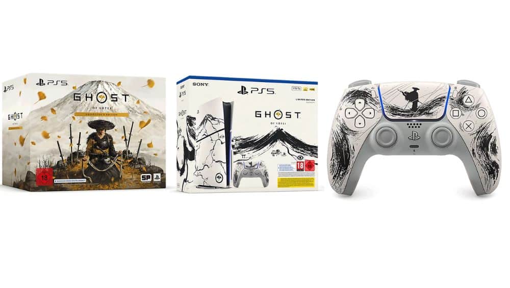 „Ghost of Yotei“ Collector’s Edition für 169,99€, DualSense Controller für 64,99€, PlayStation 5 Konsole – Ghost of Yōtei Black Limited Edition für 499,99€ & Konsolen Cover – Ghost of Yotei Gold Limited Edition für 49,99€