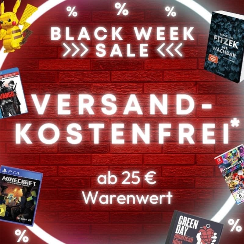 Bei ZOXS bekommt man im Rahmen der Black Week Angebote ausgesuchte reduzierte Artikel, darunter Filme auf 4K UHD, Blu-ray und DVD, sowie Bücher und Spielwaren. Darüber hinaus gibt es ab einem Warenwert von 25€ kostenlosen Versand.