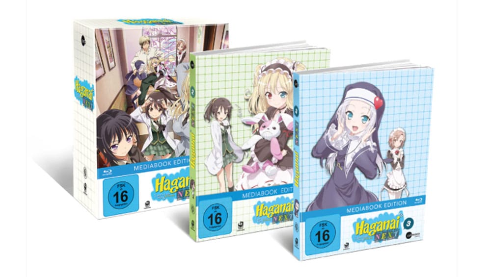 Bei Animoon bekommt man zurzeit im Angebot des Monats die komplette zweite Staffel der Serie „Haganai Next“ im Bundle auf Blu-ray für 89€. Das Staffel 2 Bundle enthält Vol. 1–3 der Haganai NEXT Limited Edition als Mediabooks mit Sammelschuber.