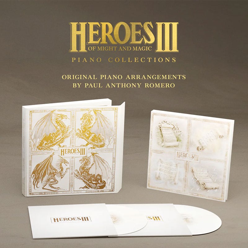 Gamemusic Records bringt im März 2026 das Vinyl-Box-Set „Heroes of Might and Magic III – Piano Collections“ heraus. In Zusammenarbeit mit Ubisoft entsteht zum 30. Jubiläum des Kultspiels eine besondere Edition, die den legendären Soundtrack würdigt. Enthalten sind zwei weiße 180-Gramm-LPs in antistatischen Hüllen mit insgesamt 31 von Paul Anthony Romero neu arrangierten und selbst eingespielten Pianostücken. Ergänzt wird das Set durch ein hochwertiges, 90-seitiges Notenbuch mit offener Rückenbindung, gestaltet von Agnieszka Żogała, das sämtliche Stücke sowie ergänzende Liner Notes enthält. Präsentiert wird alles in einer exklusiven Box mit goldenen, erhabenen Drachenmotiven, entworfen von Magdalena Katańska.