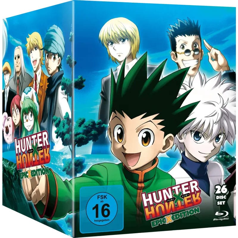 Im Dezember dieses Jahres bringt KSM Anime die komplette Serie „Hunter X Hunter“ in der Epic X Edition in den Handel. Die Sonderedition enthält alle 13 Staffeln der Serie auf insgesamt 26 Blu-ray Discs. Zusätzlich sind hier noch weitere Beigaben wie ein 108-seitiges Artbook, eine Goldene Hunter-Lizenz (18 Karat), 3 Acryl-Aufsteller, 6 Crystalcards und 2 Poster enthalten.