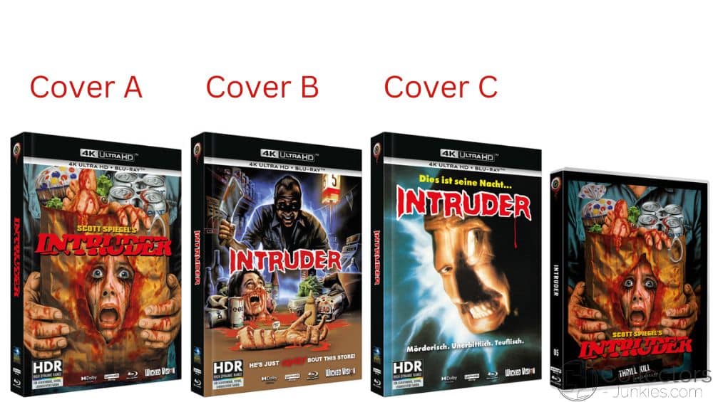 Wicked Vision veröffentlicht im November dieses Jahres den Horrorfilm „Intruder“ (1989), mit Elizabeth Cox, Renée Estevez, Dan Hicks, David Byrnes, Sam Raimi, Ted Raimi, Bruce Campbell, Lawrence Bender und Scott Spiegel, in drei Mediabook Editionen mit 4K UHD, Blu-ray und 24-seitigem Booklet (deutsch), sowie im Scanavo Case mit 4K UHD, Blu-ray und 40-seitigem Booklet (deutsch/englisch). Die Mediabooks sind auf je 150 Exemplare limitiert, das Scanavo Case auf 1500 Stück.