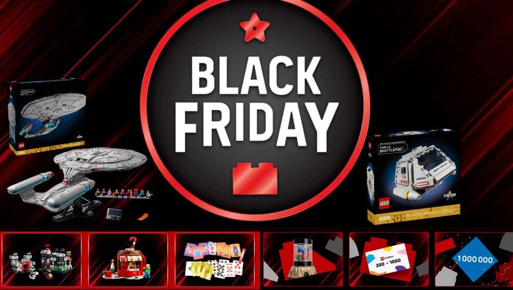 LEGO startet am 28. November 2025 in den Black Friday und bietet reduzierte Sets, Neuheiten, Geschenke und exklusive Prämien. Zum Highlight gehört das LEGO Icons Star Trek: U.S.S. Enterprise NCC-1701-D, zu dem das Type-15 Shuttlepod als Geschenk ausgegeben wird.