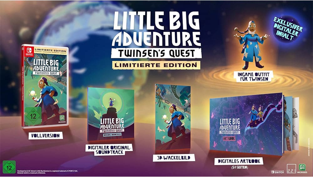 Bei Amazon bekommt man momentan das Spiel „Little Big Adventure – Twinsen’s Quest“ in der Limited Edition für die Nintendo Switch und die Playstation 5 für je 15,99€. Das Set enthält das Spiel, ein Artbook, den Soundtrack, ein 3D-Wackelbild und digitale Ingame Inhalte.