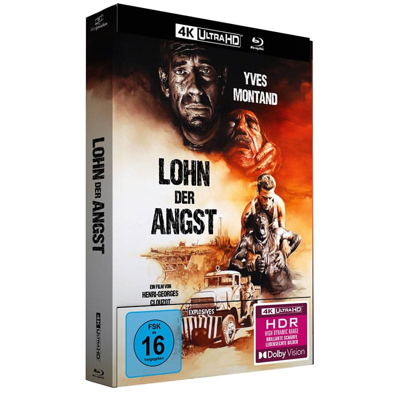 Fernsehjuwelen kündigt für November dieses Jahres den Thriller „Lohn der Angst“ (1953), mit Yves Montand, Charles Vanel, Peter van Eyck, Folco Lulli, Vera Clouzot, Dario Moreno, Antonio Centa, Jo Dest und William Tubbs, im Mediabook mit 4K UHD (HDR & Dolby Vision), Blu-ray und Booklet mit Text von Dr. Rolf Giesen an.