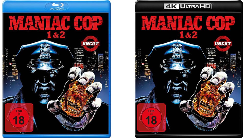NSM bringt im November dieses Jahres die beiden Horrorfilme „Maniac Cop 1 & 2“ als Double Feature in den Standard Varianten mit 2 4K UHDs, 2 Blu-rays und 2 DVDs heraus. teil 1 erscheint außerdem noch einzeln auf 4K UHD.