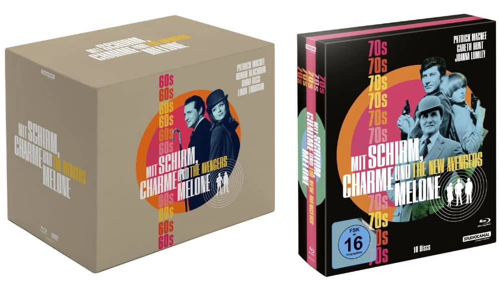 Studiocanal bringt im Dezember dieses Jahres die komplette 60er Serie „Mit Schirm, Charme und Melone“, mit Patrick Macnee, Diana Rigg, Honor Blackman, Linda Thorson, Ian Hendry und Gareth Hunt, sowie die komplette 70er Serie „Mit Schirm, Charme und Melone“, mit Patrick Macnee, Gareth Hunt und Joanna Lumley, jeweils in einer Gesamtbox heraus.