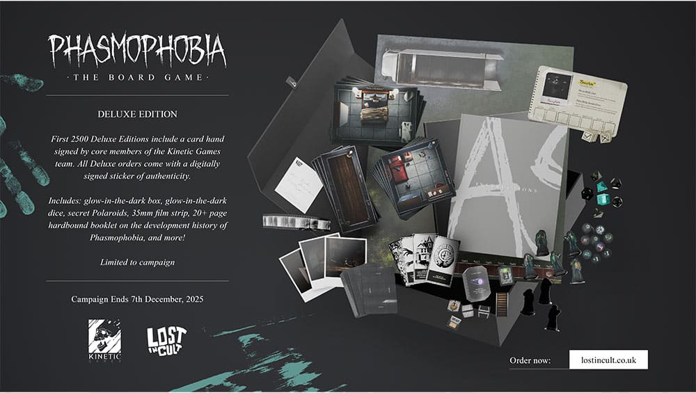 Lost in Cult bringt im 4. Quartal 2026 „Phasmophobia: The Board Game“ heraus, das in einer Standard-, Deluxe- und signierten Deluxe Edition erscheint. Das Spiel wurde in Zusammenarbeit mit Kinetic Games entwickelt und überträgt den bekannten Horror aus dem Videospiel auf den Spieltisch. Bis zu vier Spieler untersuchen darin Spukhäuser, sammeln Beweise über paranormale Aktivitäten und versuchen, ihre geistige Gesundheit zu bewahren, während sie Geistern begegnen.