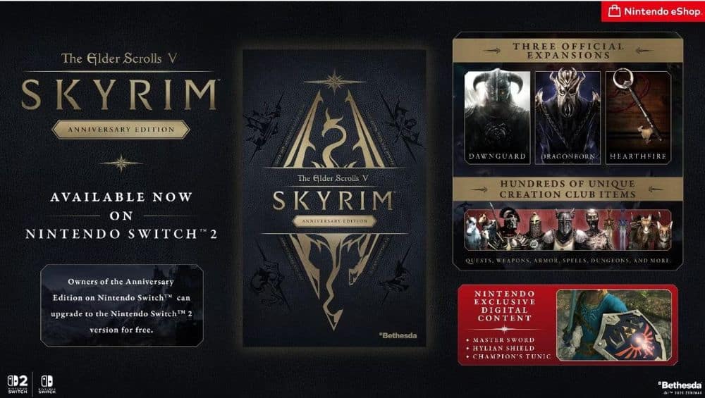 Im April dieses Jahres bringt Bethesda das Action-RPG „The Elder Scrolls V: Skyrim“ in der Anniversary Edition physisch für die Nintendo Switch 2 (Code in the Box) heraus. Die Anniversary Edition enthält das Hauptspiel, drei offizielle Erweiterungen (Dawnguard, Dragonborn und Hearthfire) sowie Hunderte einzigartige Creation Club-Gegenstände mit neuen Quests, Waffen, Rüstungen, Zaubersprüchen, Dungeons und vielem mehr.