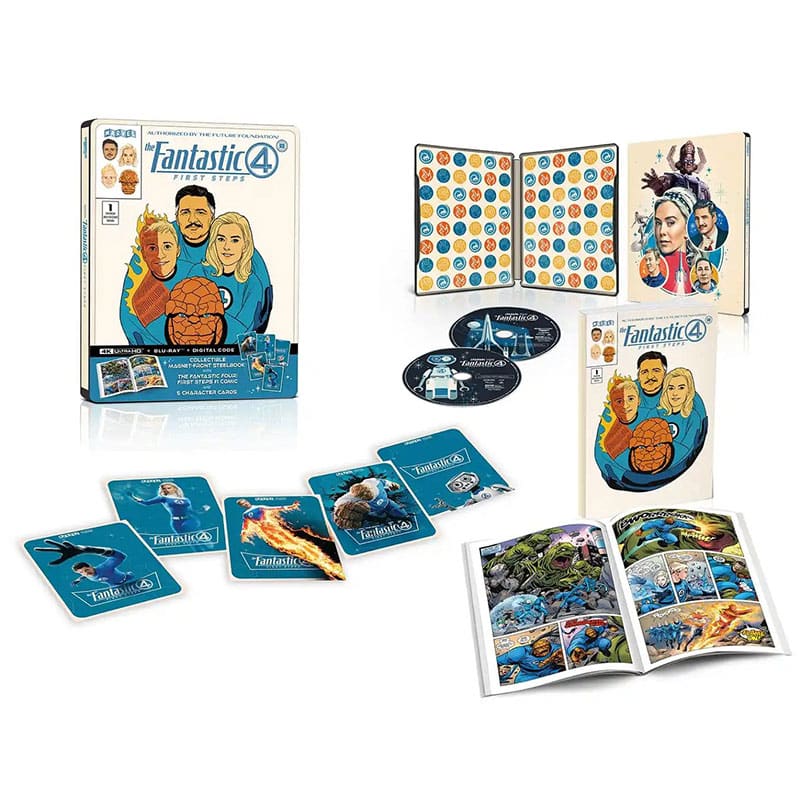 Darüber hinaus wird es noch eine weitere Version des gleichen Steelbooks mit einem magnetischen Variant-Frontcover, 5 Charakterkarten und einer Ausgabe des Comics „Fantastic Four: First Steps #1“ geben. Diese Variante ist bislang nur in den USA exklusiv bei Amazon.com bestätigt.